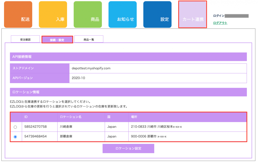 本ページは「カート連携」>「接続・設定」ページで選択しているロケーションの商品在庫数を変更する手順となります。