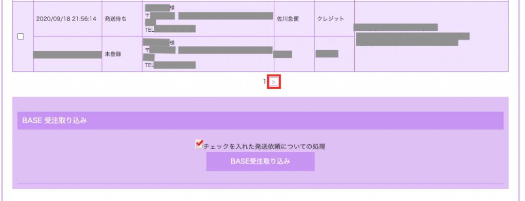 取得しきれない注文がある場合、上部もしくは下部にあるページングのボタンをクリックすると次のページの注文が取得されます。