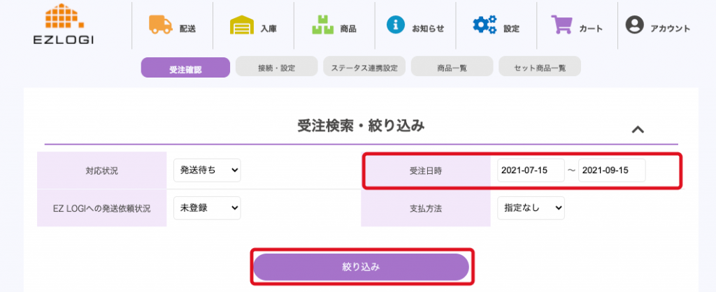 ご注文商品の在庫があり、出荷可能なご注文のみ取り込むことができます。