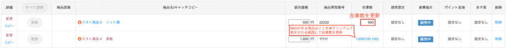 楽天RMSのショップ上で在庫数を更新してください