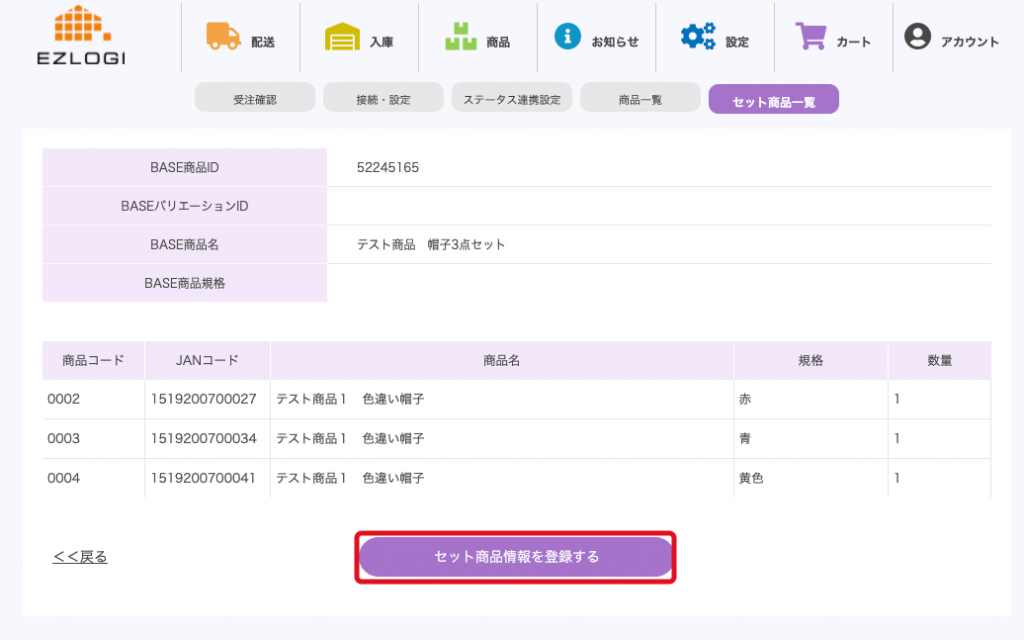 内容に間違えなければ「セット商品を登録する」ボタンをクリック