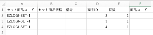セット商品登録方法2:CSVテンプレートに入力しアップロード