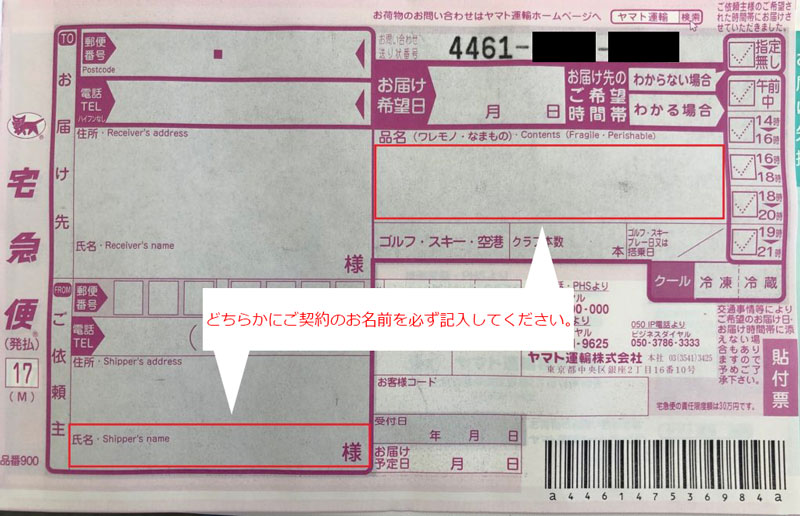 入庫連絡の登録に必要な情報が記載されていますので、伝票は発送後も破棄しないようにお願い致します。