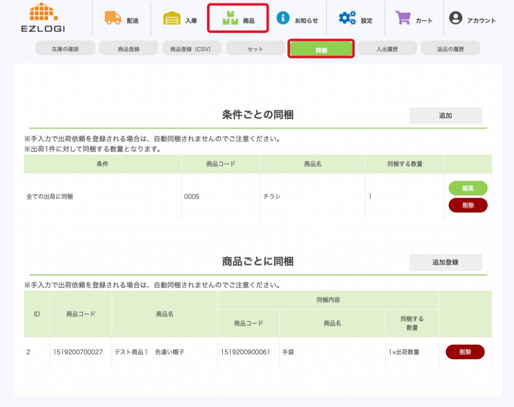 本ページでは、チラシなどの同梱物やキャンペーン等で別商品を同梱したい場合について、同梱の設定方法を説明しています。