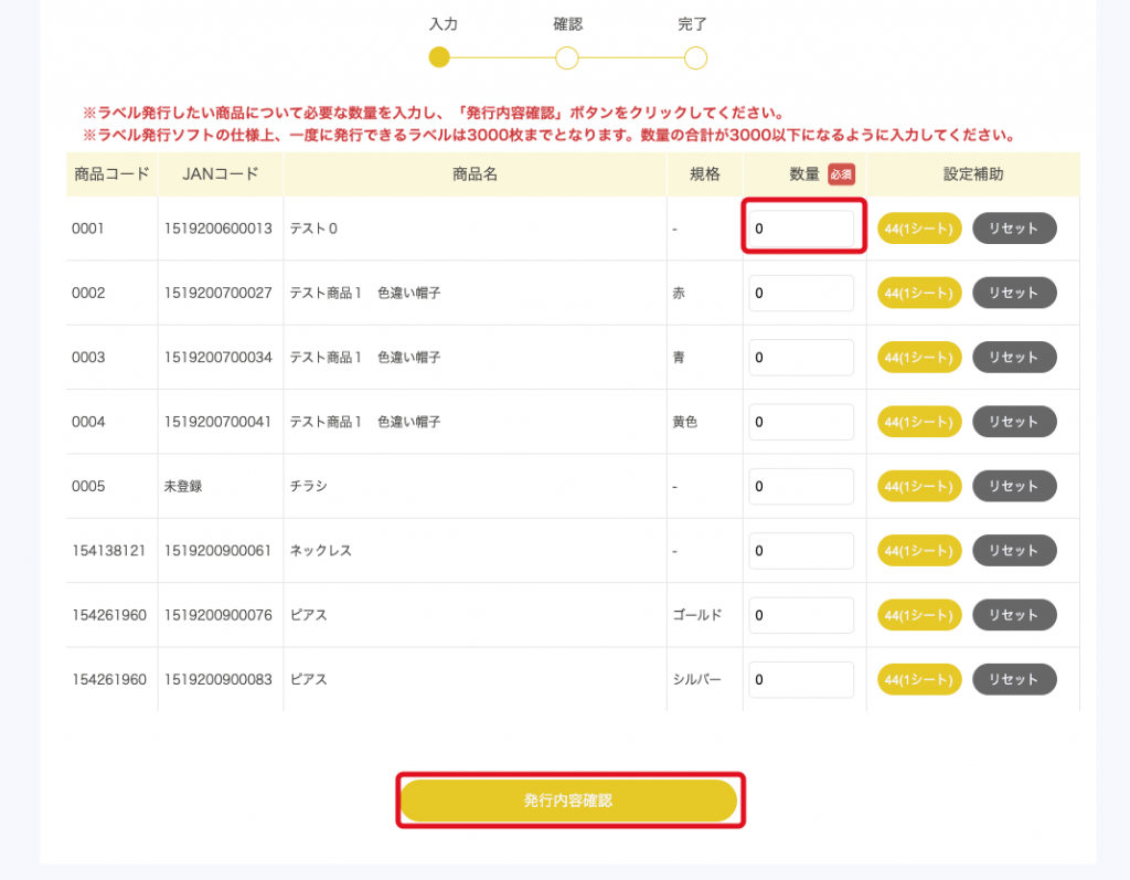 その他 JANコードのダウンロード方法 「入庫」 > 「ハウスコード発行」ページにて、該当商品全てに「数量」を入力し、画面下部の「発行内容確認」ボタンを押してください 内容に間違えがなければ、「登録」ボタンを押してください 「入庫」>「ハウスコード発行一覧」ページにて、該当発行の「ラベル取得」ボタンを押してください